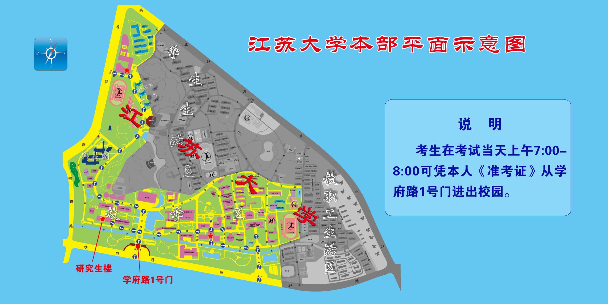 1.考生在考试当天上午7:00-8:00可凭本人《准考证》从学府路1号门进出校园,按规定时间和地点参加考试。